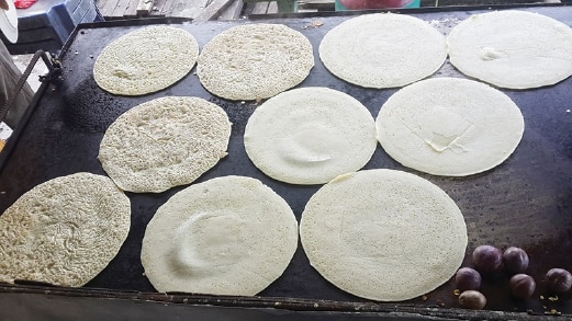 5. Kemudian tuang atas pan dan ratakan dengan mengangkat pan dan sengetkan ke kanan ke kiri sikit supaya lempeng itu nipis sahaja atas pan tu.